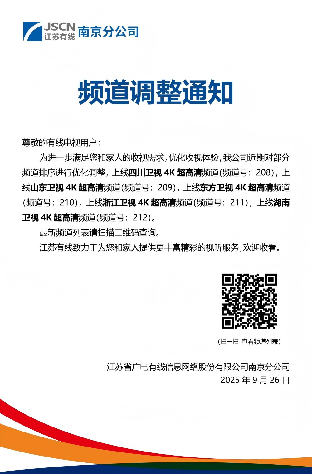 频道调整通知