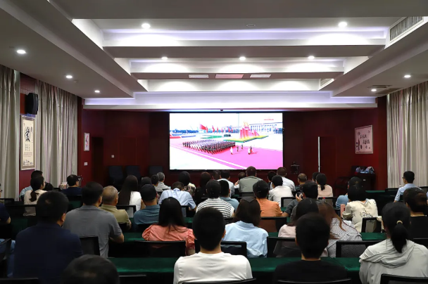 为及时学习领会重大纪念活动精神,切实做好集中收听收看工作,盐城分公司党委严格按照省公司要求,组织开展集中收看活动,部署提前调试会议室直播信号,公司全体领导班子前排就坐,在公司党委书记、总经理徐金美的带领下,大家起立、行注目礼、唱国歌,精神饱满、严肃认真地收听收看重大纪念活动,并作图片和重点情况记录,在集中收听收看中,全体人员接受了一次震撼人心的爱国主义教育,进一步凝聚了高质量发展的思想共识。